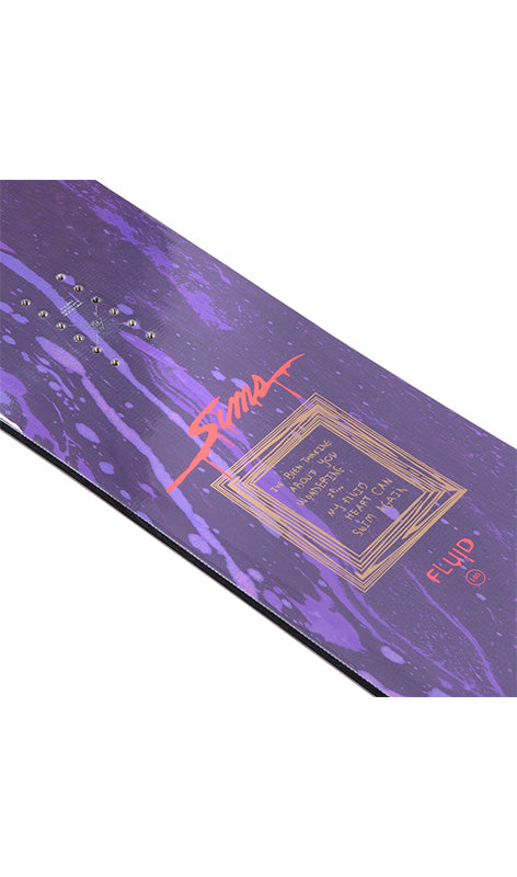 コントロールが効きながら適度にルースな感触を得られるFluidは、ロッカーとキャンバーそれぞれが持つ長所がブレンドされたデュアルツインチップで、遊び尽くせるデザイン。