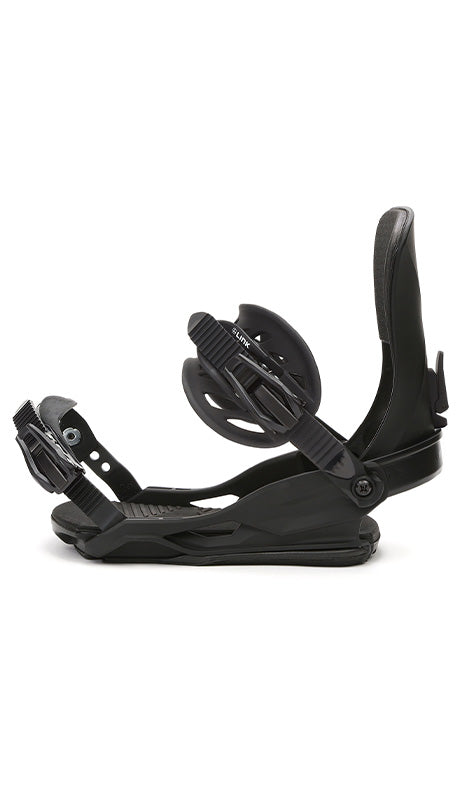 ヒールカップの可動により好みの設定が可能になり、低重心設計でしっかりとした安定感が生まれる。ベース部のEVAパッドは衝撃を吸収するだけでなく、各箇所の硬度を調整したことで踏み込んだ際のパワーをオートマチックにボードヘ伝達。このLINK BINDINGSのスタンダードがスノーボードライフをサポートする。